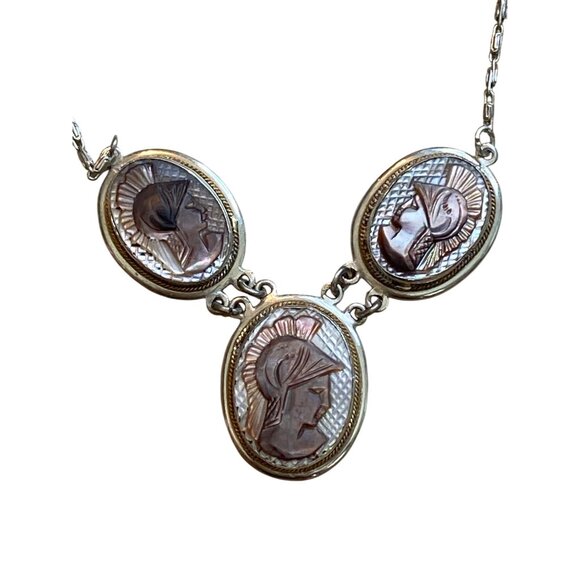 Victorian 800 Silver Necklace & Bracelet Set With Mother Of Pearl Cameos