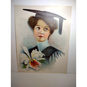 Victorian Art Print Women Graduate School Iris Flower Lithograph 1906 Original
