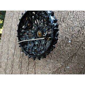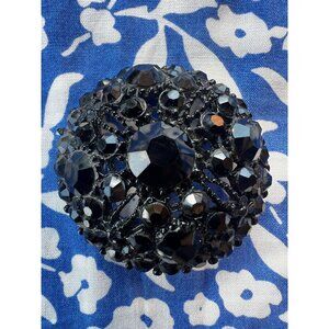 Victorian Black Mourning Crystal Brooch Pin 1.75" Diameter Large Round Faceted