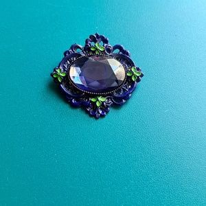 Victorian Blue Stone & Floral Brooch - Blue Rhinestone Flower Pin - Valentine