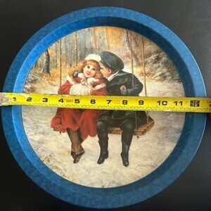 Victorian Boy Girl Winter Scene Swing Tin Serving Tray 12 Diameter