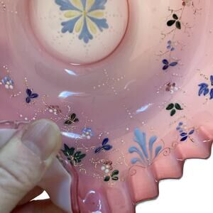 Victorian Brides Basket Bristol? Glass Cranberry Pink & White Bowl Enamel Design