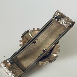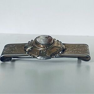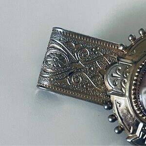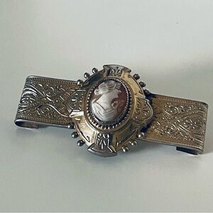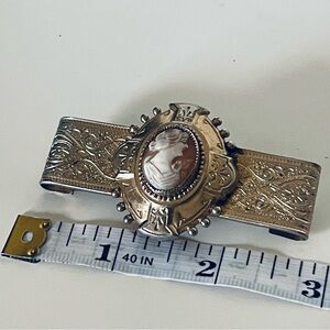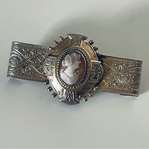 Victorian Brooch Taille D’ Epargne Enamel Gold Tone Pin Back Brooch