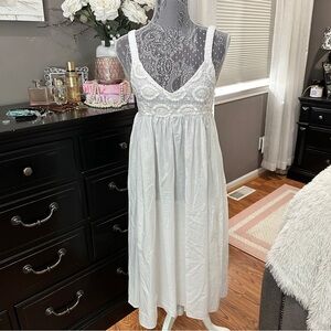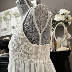 Victorian Chics White Embroidered Midi Boho Cotton Sundress - Size Small (EUC)