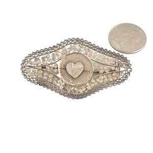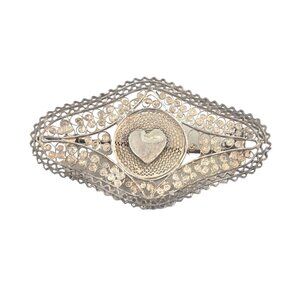 Victorian Egyptian Revival Silver Filigree Heart Brooch