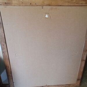No artist's signature or title. Handmade wooden rustic frame complements the scene that appears to be a fantasy style Victorian lady and a Cherub possibly in a garden or forest.
