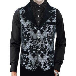 Victorian Gentleman's Aristocrat Vest Black Silver Tapestry Stylish Casual Vest