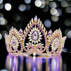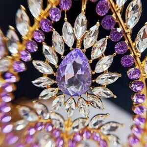 Add a touch of elegance to your outfit with this beautiful Victorian Gold Jewelry set. The Princess Crown and Goddess Jewelry are perfect for any formal occasion, whether it be a Wedding, Party/Cocktail, Christening, or Pageant. The set features a stunning Purple Crystal Tiara with Rhinestone Accents, and is made of high-quality materials such as Gold, Crystal, and Rhinestone. This Headdress is Handmade with care and attention to detail and is suitable for all hair types. The Heart Shape and Argyle/Diamond Pattern add a touch of sophistication to the overall design. This set is perfect for those looking for something unique and waterproof and is available in the United States. Personalization is not available for this item.