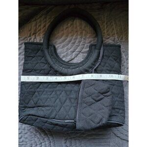This quilted black tote bag combines functionality with a sleek design. Featuring circular handles, a detachable coin purse, and multiple interior zippered compartments, it offers ample space and organization for everyday use or travel. Its durable material ensures longevity and style.