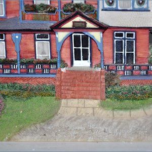 Victorian Historical Turn of Century House Wall Plaque Red Brick MultiColor Wood