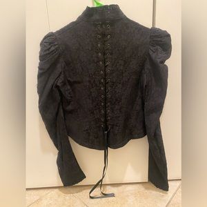 Black Victorian jacket. Tag size is Large, see photos for measurements.