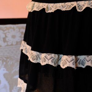 Cute and flirty Victorian style black mini skirt with lace details. So coquette. Get the LoveShackFancy style for less. Very versatile in styling!