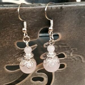 Victorian Lace Rose Quartz Gemstone Drop Earrings.