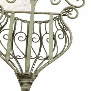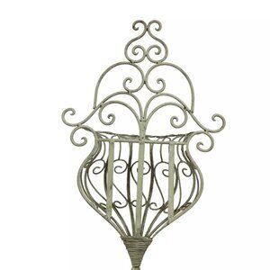 This beautiful planter is new but has been antiqued a verdi green and has no flaws. It could easily be sprayed white and antiqued as well. For plants, it can be lined with moss, fabric or a pot. It could be used for mail, washcloths, soaps, dishtowels, etc..... The approximate measurements are: