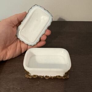 Victorian Milk Glass Trinket Box with Gold Paint Details