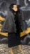 The front is finished with a bold zigzag velvet trim, and the collar is trimmed in astrakhan (Persian lamb) fur. The cape drapes beautifully over the shoulders, offering both warmth and a striking silhouette. This is a perfect example of high-Victorian mourning fashion.