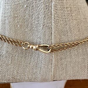 An antique solid 14 karat gold pocket watch chain and seed pearl gold slide keeping the double chains aligned. circa late 1800’s.
