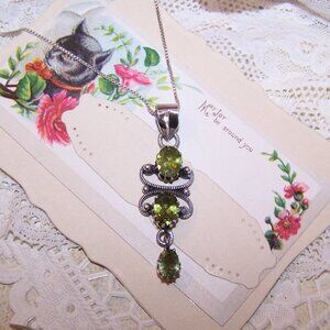 Victorian Revival Sterling Silver Peridot Dangle Pendant