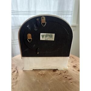 Vintage 1990s Dezine Ltd. Victorian Rose dresser-style picture frame with tiny sculpted details—lamp, book, teacup, vase, and floral accents. Battery compartment present; light function untested. Holds a 5” x 3.5” photo. Perfect shabby chic, cottagecore, or Victorian-style décor piece.