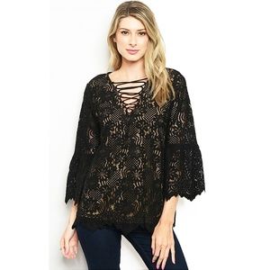 Victorian Ruffle Bell Sleeve Crochet Eyelet Blouse