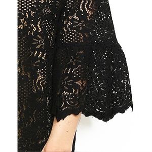 framed with unlined bell sleeves and trimmed with eyelet–inspired detailing