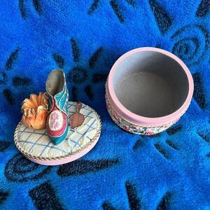 Adorable porcelain Victorian Shoes trinket/jewelry box.
