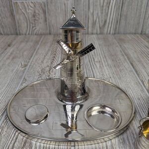 Victorian Silver Plated Novelty Cruet Set with Engraved Windmill Style Pepper Po