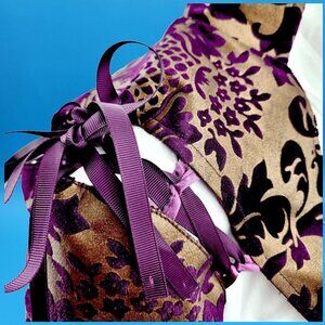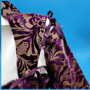 Elevate your style with this Victorian Steampunk military-inspired coat dress. Perfect for theater, cosplay, or themed events, it features a corset lace-up design and intricate purple and gold tapestry.