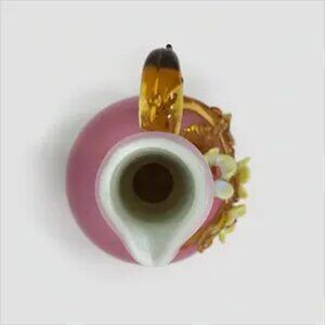 Made by Stevens & Williams in England in the late 1800's. This pink peachblow glass ewer features an amber thorn handle and applied Matsu-no-ke flower decoration. In good condition with damage to the applied flowers as pictured. Measures about 10 inches tall.