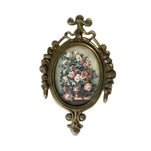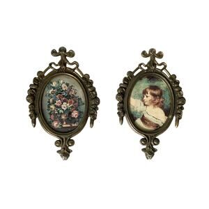Victorian Style Brass Ornate Framed Picture Oval Frame Italian Prints Miniature