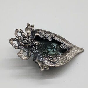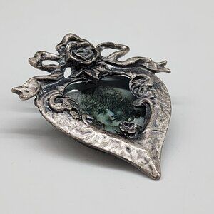 Victorian Style Heart Shaped Silver Brooch With VTG Girl Portrait Rose Details