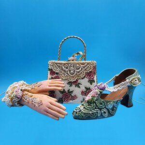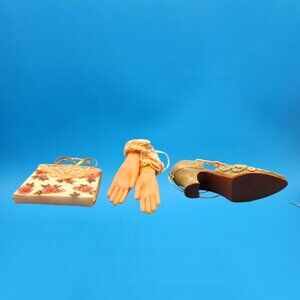 Victorian Style Lace Shoe Glove & Purse Ornament Set With Floral Accents & Rose