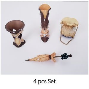 Victorian Style Resin Shoe, Purse Umbrella Steampunk Jester Boot figurine 4pcs.