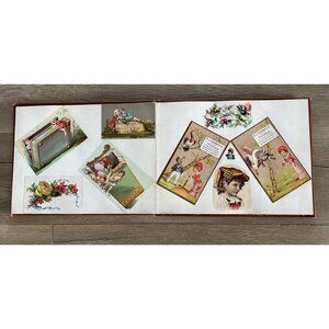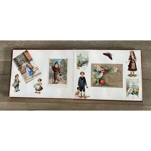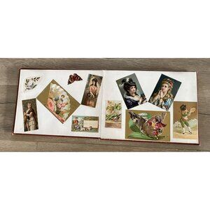 Here we have a Vintage Victorian Trade Card Double Sided Scrapbook Album. It has over 100 trade cards and images. They are glued in to the album. It is approx 11" wide x 8" tall. It is in good condition. See photos for more info.
