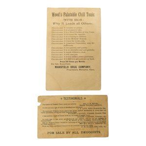 - Approximate size: Wood's Palatable Chill Tonic - 5 1/8" x 3 3/8"; Western Tonic - 4 1/8" x 2 1/2"