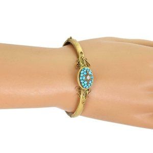 Victorian Turquoise 14k-15k YGold Bangle Bracelet