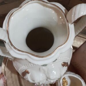 Vintage ceramic ivory vase with angels and pink roses, gold trim, Victorian style (11" H. X 7" W.), Angel/ Cherub In Clouds Tea Light Holder Porcelain, a cute gold cherub angels broach, Romantic book "A Victorian Rose" by Catherine Palmer. (Gold tray, and roses are not included in this package.)