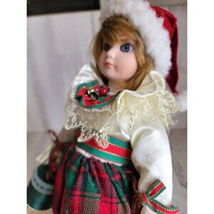 Victorian porcelain Cathy doll Xmas home decor unique plaid