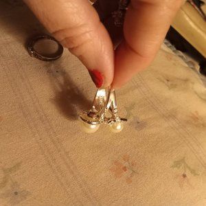 This ring has 2 large faux pearls in a swirl design surrounded by tiny white rhinestones