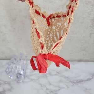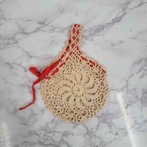 Spiral pattern. Tan with red ribbon. Made between 1880-1920. Great display peice.