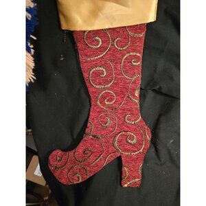 Victorian-Inspired Red & Gold Swirl Christmas Stocking Boot