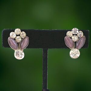 Victorian Rhinestone Earrings Purple Art Deco Lavender Screw Back Silver Tone