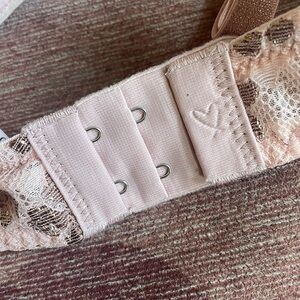 Experience comfort and elegance with this floral lace underwire bra. The delicate pink hue adds a touch of femininity to your intimate collection. Amazing pre loved condition size 34D by Victoria's secret