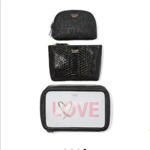 Three sleek cosmetic bags for stashing everything you need and organizing all of your makeup, perfume and mini essentials.