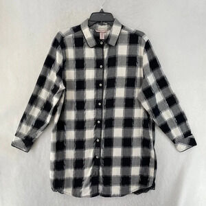 Victoria's Scecret Sleepshirt Large Black White Plaid Long Sleeve Button Down