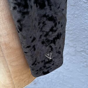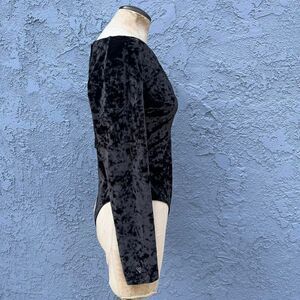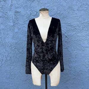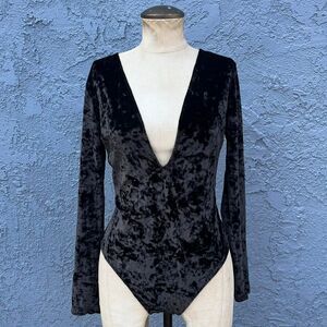 Black velvet long sleeve bodysuit with V-neckline and stretchy material. From Victorias Secret and a M/L.