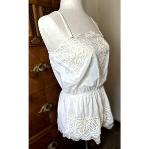 Victoria's Secret 100% Cotton Ivory Lace Teddy XS Boho Cowgirl Romantic Bridal