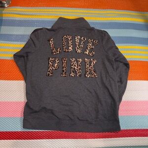 Victoria's Secret 1/4 Zip-Up Sweater Grey Leopard Print Women’s Size Medium