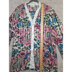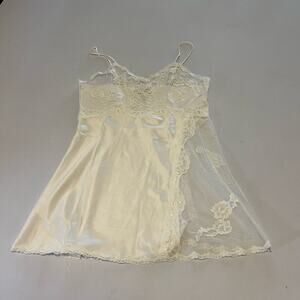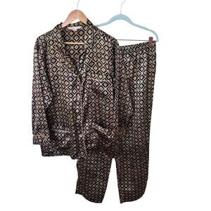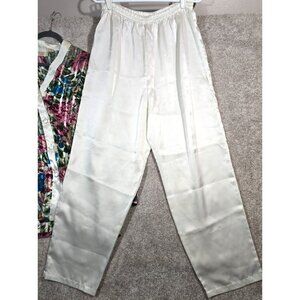 Victoria's Secret 2 Pc Vtg 90s Satin Floral Pajama Set Top Pants Ivory Women's L