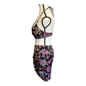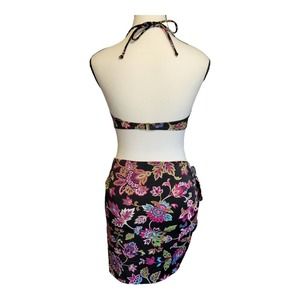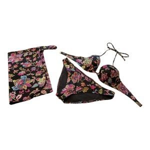 Victoria's Secret 2 Piece Bikini with Sarong Black & Floral Print Size 36B Large